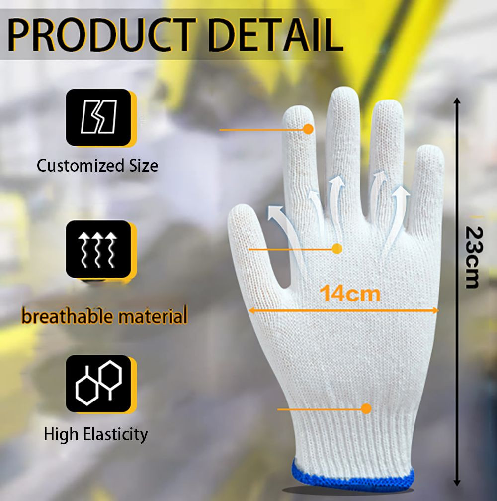 High Quality Labor Protection 500g 600g 700g White Cotton Work Safety Gloves White Knitted Cotton Gloves